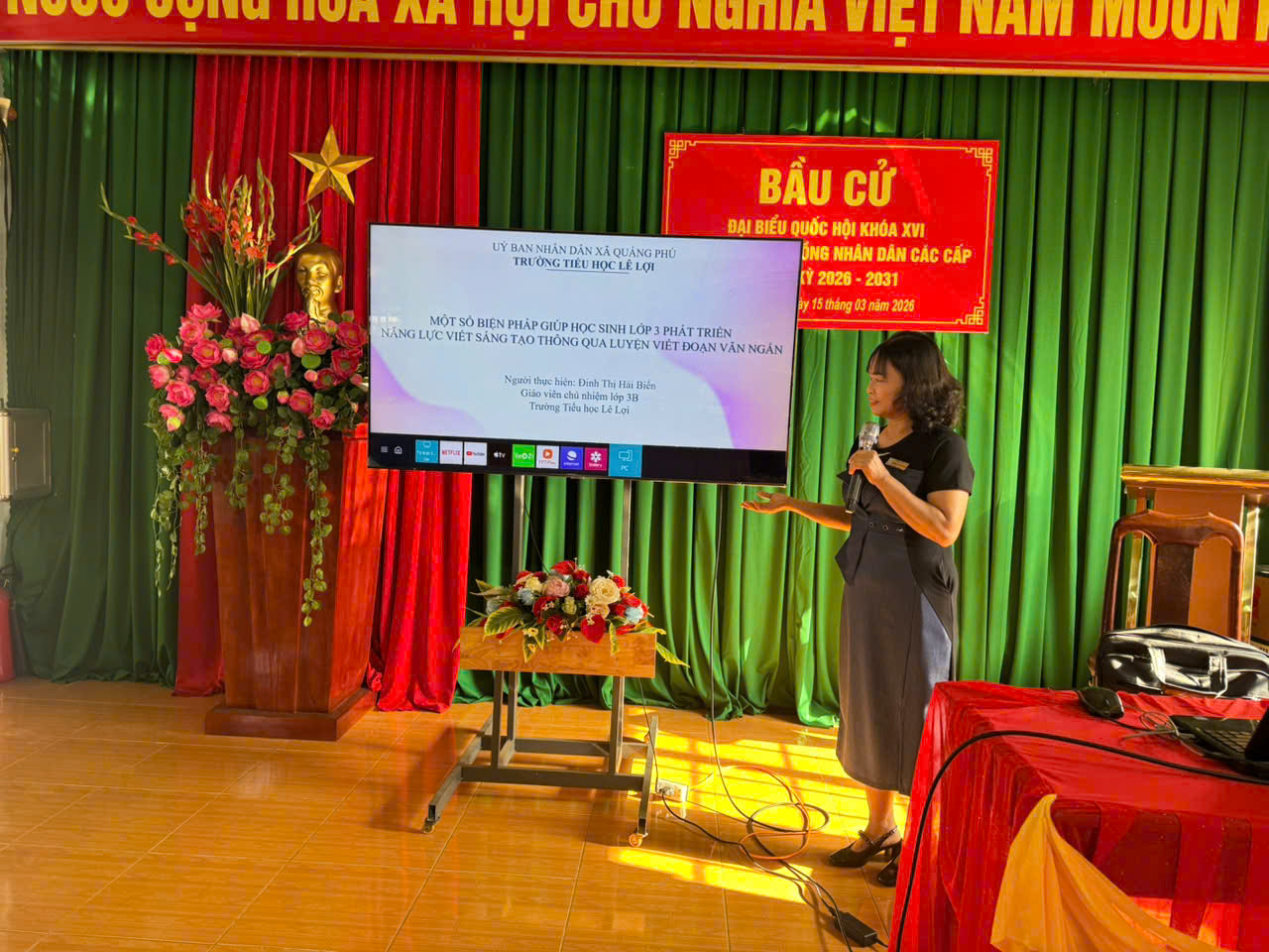 Hội thi giáo viên giỏi của Trường Tiểu học Lê Lợi đã được tổ chức trong hai ngày 17 và 18 tháng 3 năm 2026, thu hút sự tham gia nhiệt tình của đông đảo giáo viên trong nhà trường. Đây là hoạt động chuyên môn quan trọng, nhằm tôn vinh năng lực giảng dạy, đồng thời tạo cơ hội để các thầy cô giáo giao lưu, học hỏi và chia sẻ kinh nghiệm.
