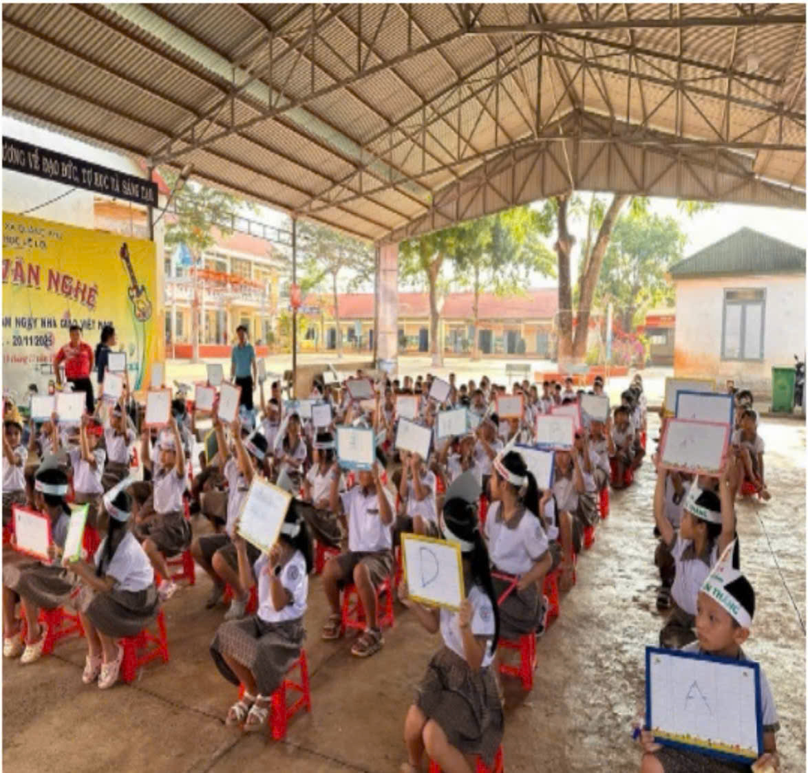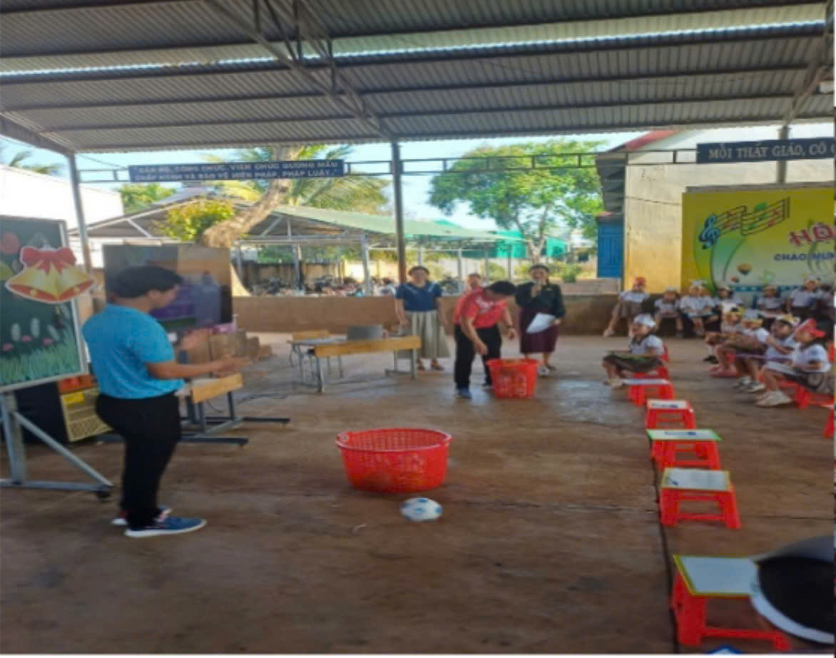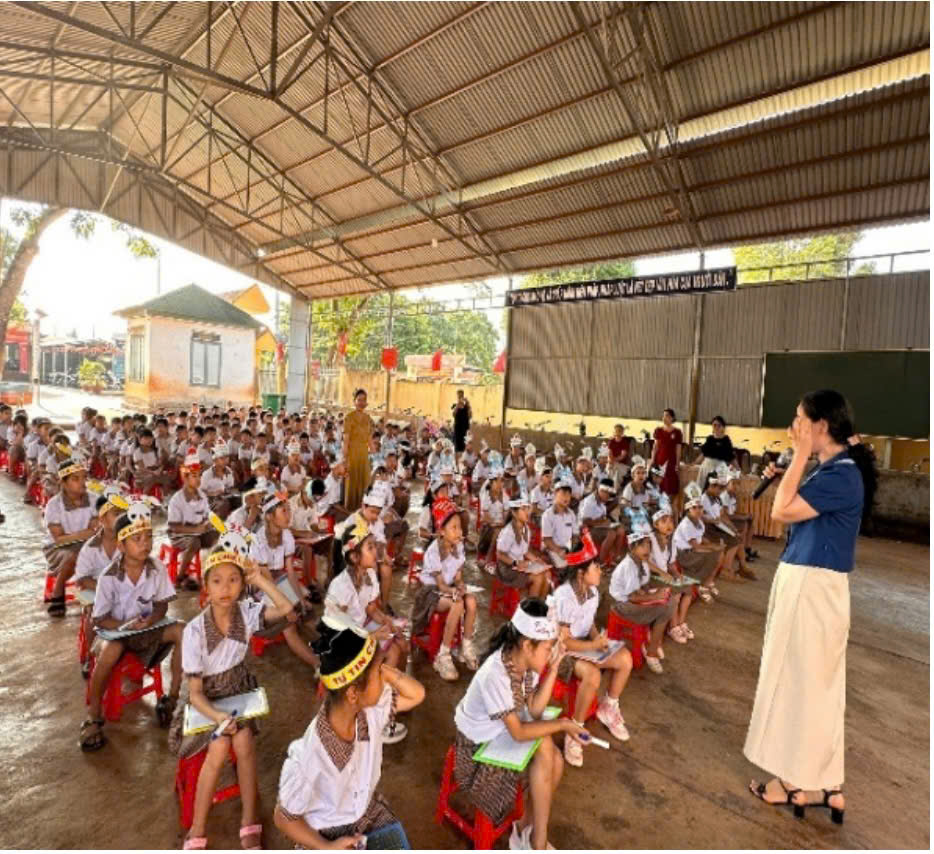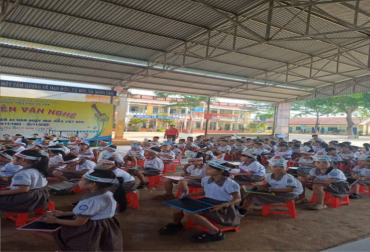 Mở đầu là các tiết mục văn nghệ vui tươi, tạo không khí hào hứng và thu hút sự chú ý của học sinh.