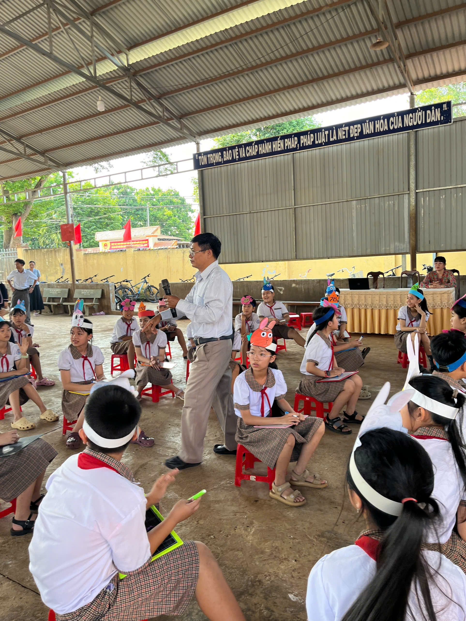 Hình ảnh Thầy Lê Xuân Luyện Hiệu trưởng giao lưu với các em học sinh khối 5